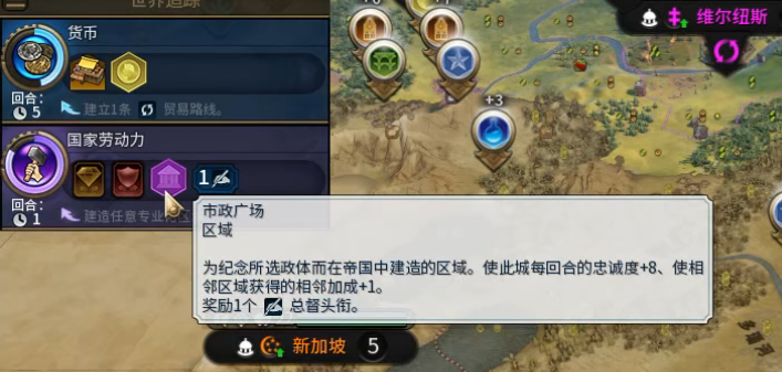 市政廣場作為全國內只可建造一個的區域,其選址是至關重要的。凡是需要自己出大量移民的情況,市政廣場中的祠堂建築都是其中的核心,這個光是看其效果就能知道:移民坐地送工人,本城移民加速50%。 征服起手的市政廣場選址就簡單多了,主要作用就是提供總督點讓老馬點出黑市商人。只要能敲(人口滿足要求),而且敲得不慢就行,放置位置也是相對比較隨意。