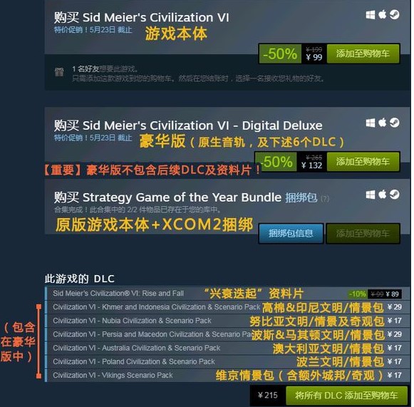 首頁 文明6 問答 文明6標准版和白金版區別是什麼? 2022-09-10 白金版比標準版的內容多一些。數字白金版包括完整的遊戲本體,25周年數字音軌,以及遊戲發售後四個DLC擴展包的內容,以更優惠的套裝價格獲得新的地圖,戰役,文明以及領袖。