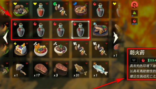 1、進入遊戲中吃下防火葯