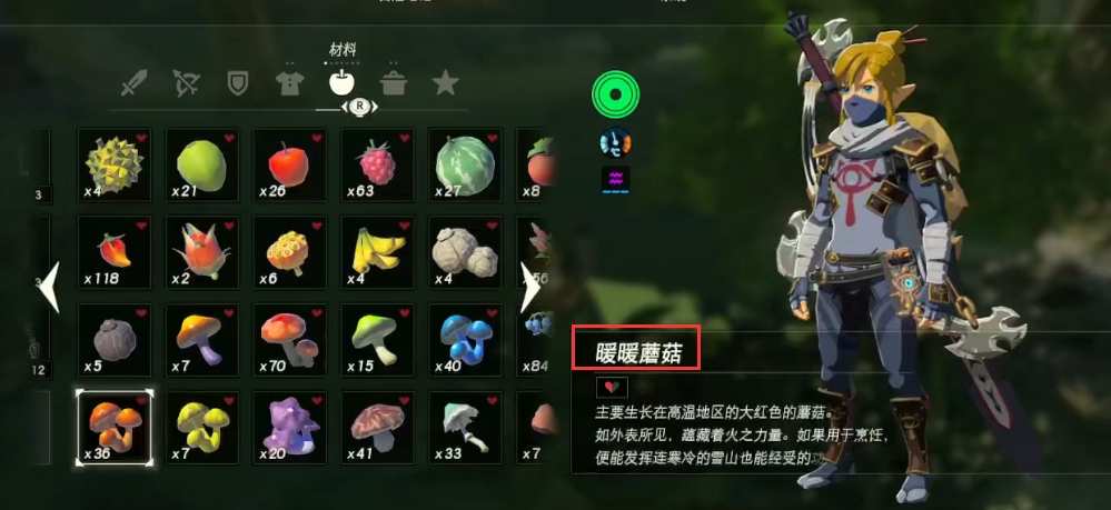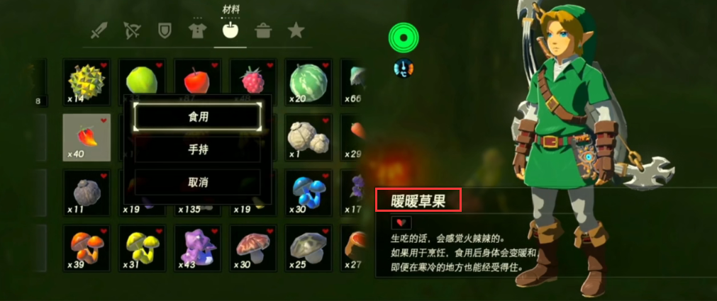 1.塞爾達傳說:荒野之息一級防寒烹飪配方是一個暖暖草果