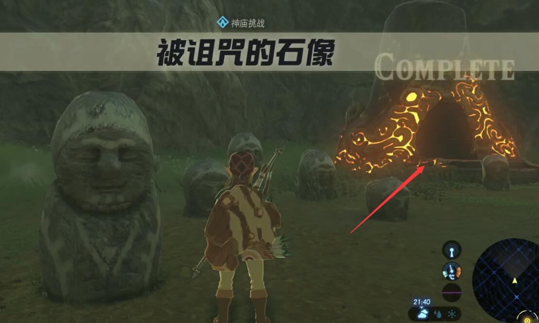 7、射擊泛著紫光的石像的眼睛,就會擊碎那個石像,然後就會完成神廟挑戰——被詛咒的石像。
