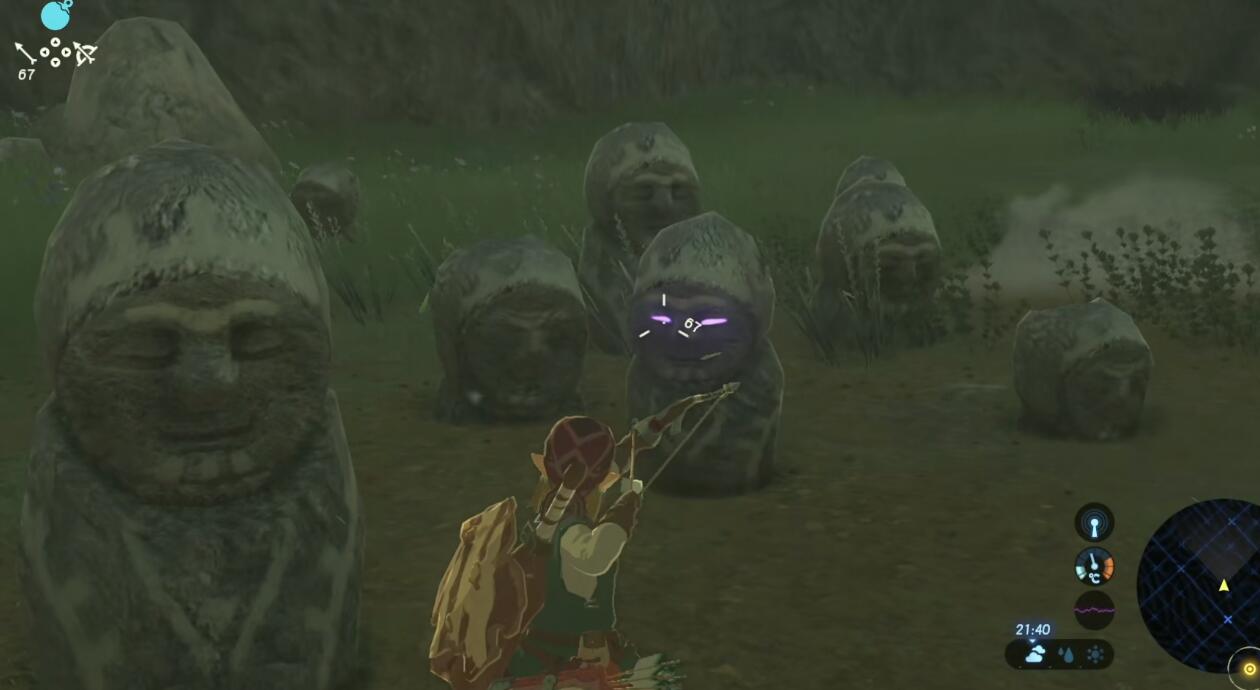 1、塞爾達傳說:荒野之息遊戲中,當黑暗之光宿居於被詛咒的石像在哈特諾堡壘附近。