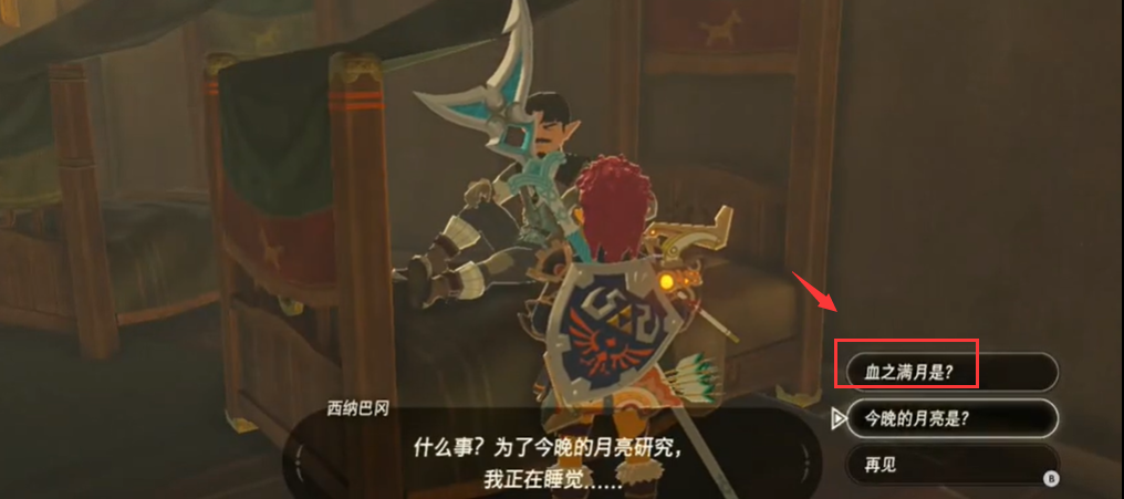 首頁 塞爾達傳說:荒野之息 問答 塞爾達怎麼提前知道血月? 2022-09-12 1.塞爾達想要提前知道血月可以前往雙子驛站,地圖上的位置如圖所示2.進入雙子驛站,找到npc西納巴岡,和他對話3.通過對話可以問他血月的時間或者今晚的月亮情況,就可以提前知道血月了