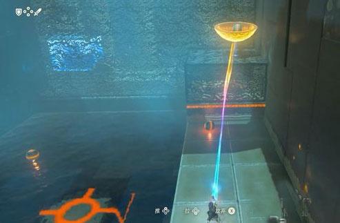 2進入神廟,前面有個水池子,可以用吸鐵石用鐵鍋舀出寶石,然後抖到邊上的機關里;