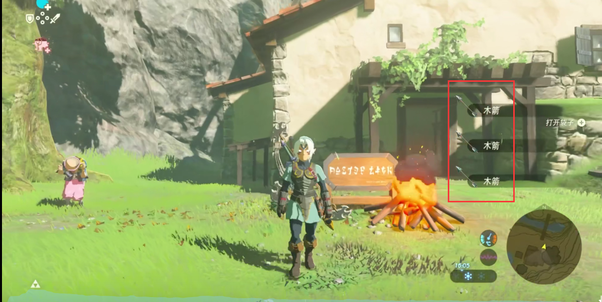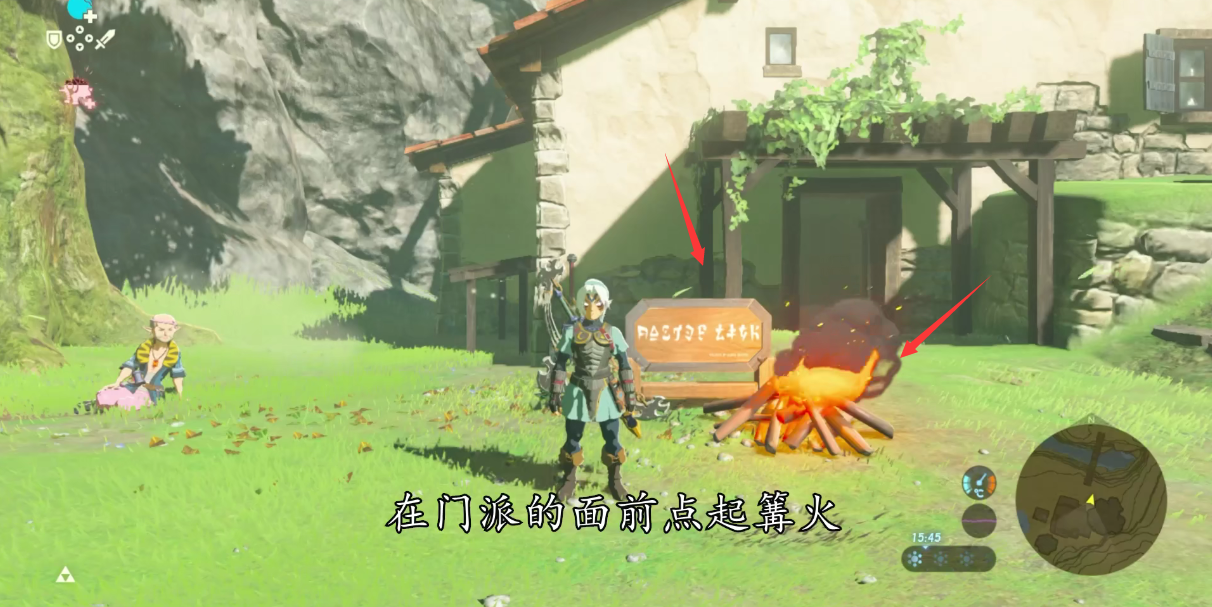 3.將篝火點在門牌的前面,注意篝火是刷木箭的重要道具