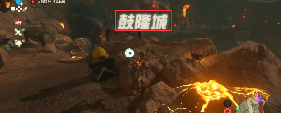 3.如圖到達了鼓隆城。第一次到鼓隆城一定要吃防火葯,不然無法到達的