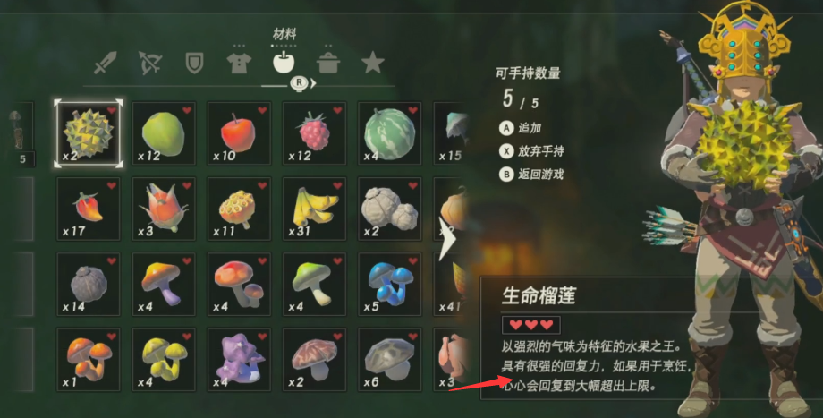 首頁 塞爾達傳說:荒野之息 問答 塞爾達最劃算的加血料理是哪個? 2022-09-15 1.在遊戲「塞爾達傳說:荒野之息」中,生命燉水果是最劃算的加血料理了。2.只需要幾個生命榴槤燉在鐵鍋里,就可以把血量完全恢復。
