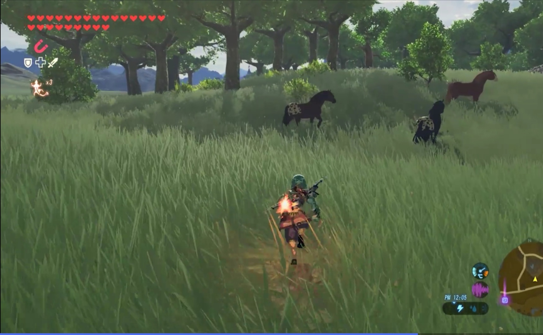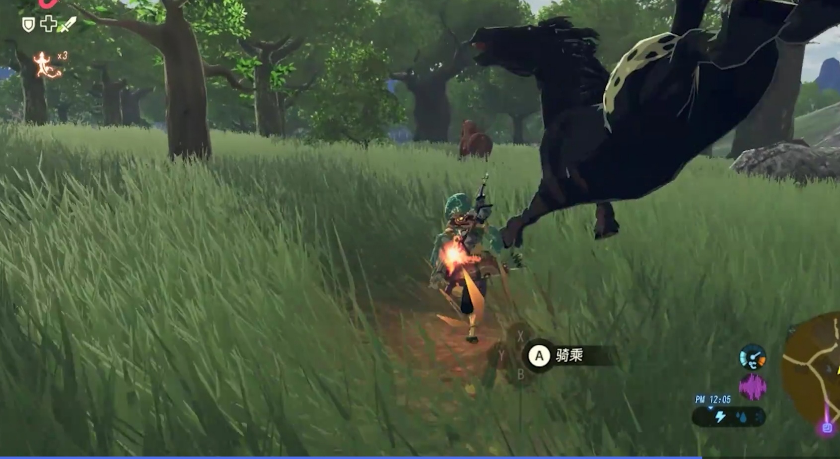 首頁 塞爾達傳說:荒野之息 問答 塞爾達第一匹馬在哪抓? 2022-09-16 1、玩家想要抓第一匹馬,需要解鎖初始台地後,打開地圖前往門前驛站村遺跡左邊的草原,地圖位置如下圖:2、到達後,可以看到草原有有很多匹馬,如下圖:3、然後玩家需要按A鍵騎乘,騎上馬後再安撫一段時間即可成功抓獲,如下圖: