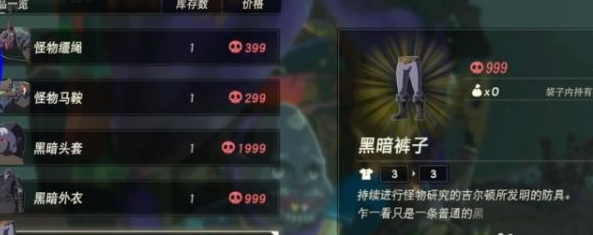 首頁 塞爾達傳說:荒野之息 問答 塞爾達傳說怪物商店什麼值得買? 2022-09-17 塞爾達傳說怪物商店購買解析如下:怪物商店的黑暗套裝以及4個頭套(波克布林面罩、莫力布林面罩、蜥蜴騎士面罩、人馬面罩)都值得購買,帶上面罩後可以做出特殊的姿勢。《塞爾達傳說:曠野之息》本身作為收集向遊戲,推薦所有物品都購買。