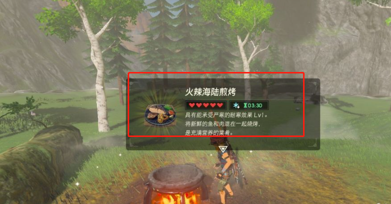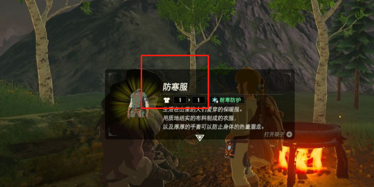 4、對話後會自動把火辣海陸煎烤給老人,老人了解食譜後林克獲得防寒服。