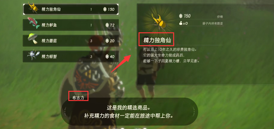 首頁 塞爾達傳說:荒野之息 問答 塞爾達傳說精力獨角仙哪裡買? 2022-09-18 1.塞爾達傳說精力獨角仙是從布穀力商人那裡購買,他不是只在一個地方賣東西,他的行商路線是卡卡利科村到哈特諾村的一條路上上,具體位置如圖所示2.找到商人布穀力,購買精力獨角仙