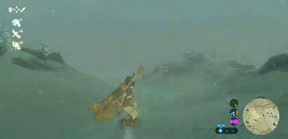 3.玩踩盾滑行時,要注意如果斜坡下斜不夠,或者撞到障礙物時,速度太慢時林克會自動取消動作