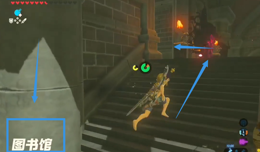首頁 塞爾達傳說:荒野之息 問答 塞爾達冰劍在哪? 2022-09-18 1、首先使用滑翔傘去往海拉魯城堡,如圖下。2、到達城堡後來到三樓圖書館。3、進入圖書館會看見廢墟里有冰雪大劍。4、最後拾取就能獲得冰雪大劍。