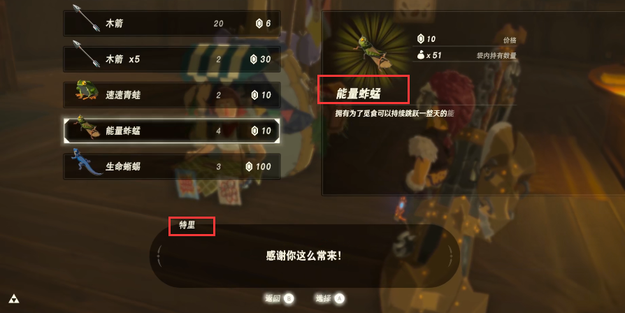1.塞爾達精力蚱蜢可以從商人那裡購買,如圖所示前往平原外圍的驛站