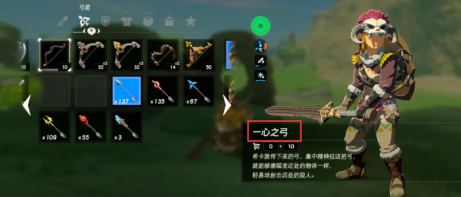 首頁 塞爾達傳說:荒野之息 問答 塞爾達一箭兩環怎麼完成? 2022-09-18 1.如圖所示找到卡西瓦,領取一箭兩環的任務2.完成一箭兩環建議使用一心之弓,它具有放大的效果,使得遠處的物體像近處的一樣3.來到兩環這里,拉開一心之弓,就可以清晰的看見兩個環,射擊穿過即可4.如圖就成功完成了一箭兩環任務