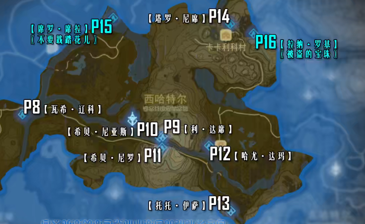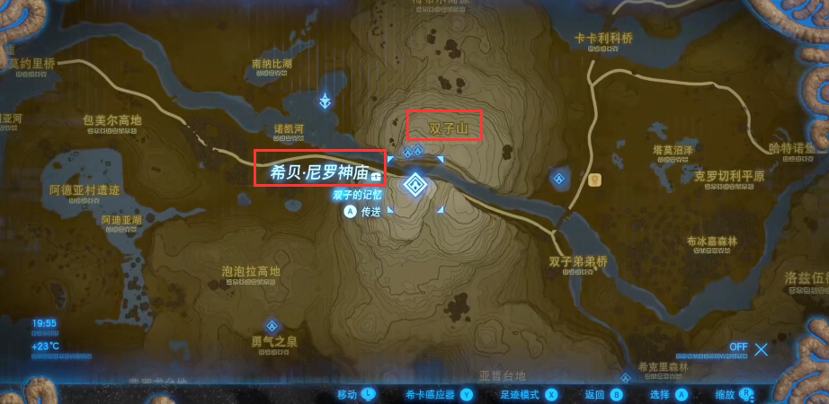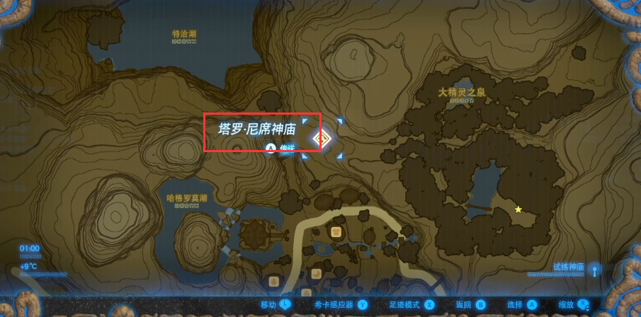 1.塞爾達雙子塔地區共有9座神廟,地圖上的位置如圖所示