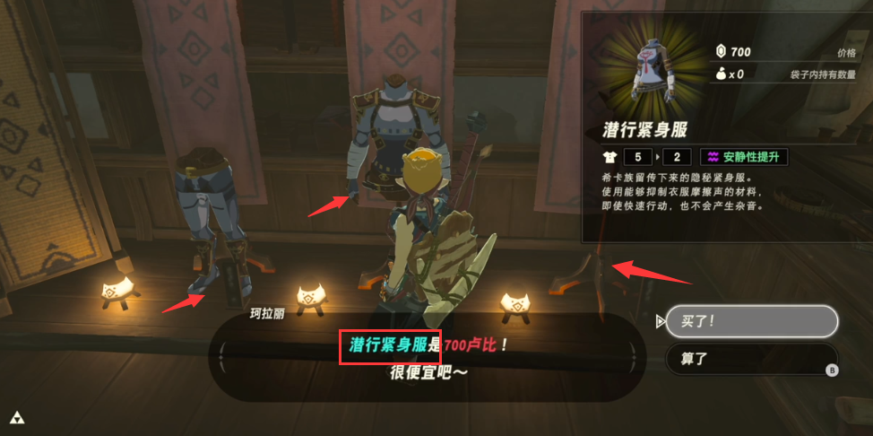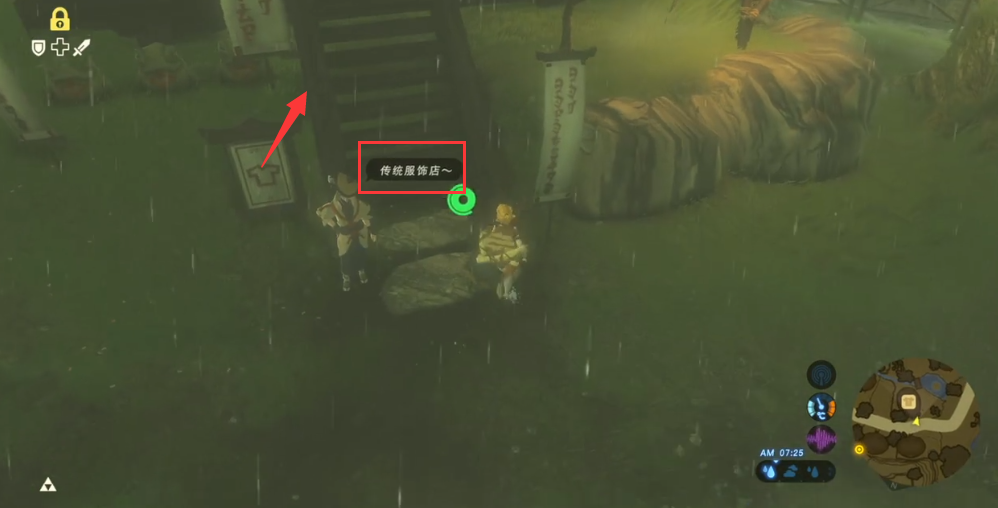 首頁 塞爾達傳說:荒野之息 問答 塞爾達忍者套裝在哪? 2022-09-19 1.塞爾達忍者套指的是潛行套裝,在卡卡利科村的防具店裡,地圖上的位置如圖所示,在哈格羅莫湖旁邊2.到達卡卡利科村,找到圖中所示的傳統服飾店3.進入之後就可以看到潛行套裝了,跟老闆買褲子、衣服和頭盔就可以組成忍者套裝了