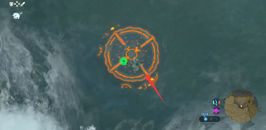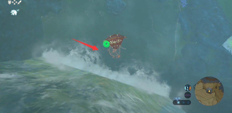 2.先來到塞拉瀑布上,瀑布的下面有個祭壇,使用滑翔帆飛下去