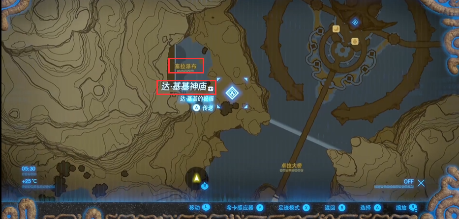 1.塞爾達傳說瀑布邊上的神廟是達基基神廟在塞拉瀑布的旁邊,地圖上的位置如圖所示
