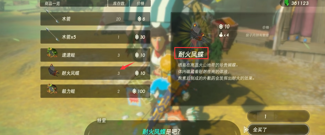 3.可以從他那裡購買耐火鳳蝶,耐火蝴蝶沒有大批固定刷新的聚集地,如果要自己抓了話,可以去死亡之山地區碰碰運氣。特里這里是可以固定購買耐火鳳蝶,也是一次獲得最多的地方