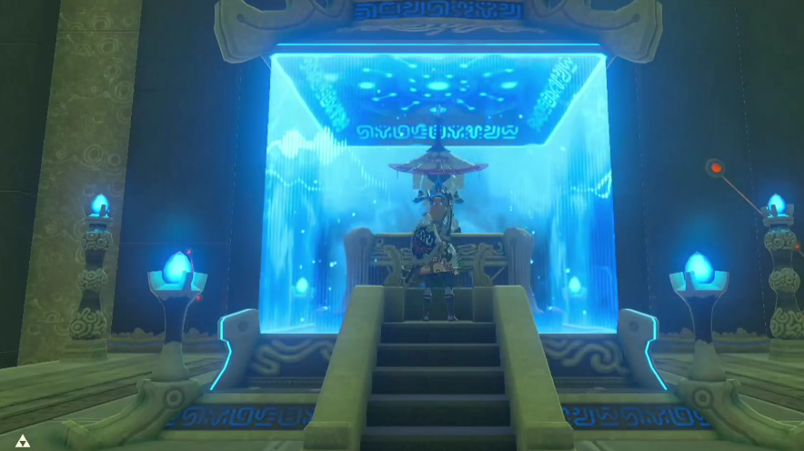 玩家藉助炸彈跳到上方,使用滑翔翼跳到神像處,就可以通關基希羅特摩神廟了。
