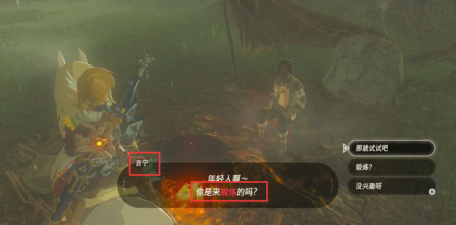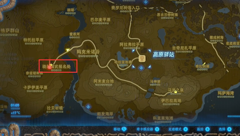 首頁 塞爾達傳說:荒野之息 問答 塞爾達騎射演武報名處在哪? 2022-09-20 1.塞爾達騎射演武報名處的位置在卡薩伊美平原,可以從高原驛站那邊開始沿著路過去,地圖上的位置如圖所示2.沿著小路走會看到npc吉寧,就找到了騎射演武報名處,報名開始鍛煉