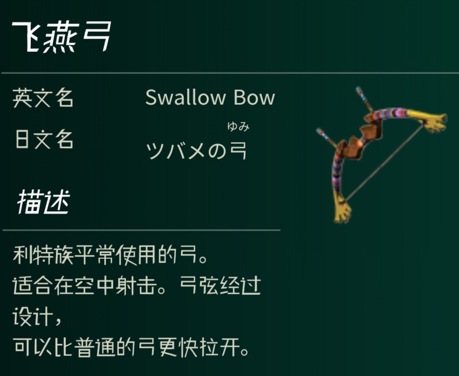 首頁 塞爾達傳說:荒野之息 問答 塞爾達飛燕弓有什麼用? 2022-09-20 飛燕弓是攻擊敵人用的,也是修復大鷲弓的必備材料。飛燕弓是利特族平常使用的弓,適合在空中射擊。弓弦經過設計,可以比普通的弓更快拉開。