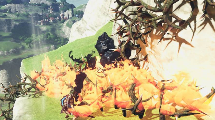 塞爾達傳說:荒野之息遊戲中的荊棘我們可以先裝備一件火焰武器,然後揮動火焰武器,放出火焰效果,就可以使荊棘燃燒去掉了。
