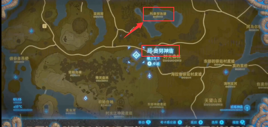 首頁 塞爾達傳說:荒野之息 問答 葛摩池塘在哪? 2022-09-21 1.葛摩池塘在地圖上的位置如圖所,從瑪奧努神廟傳送過去,往北邊跑2.如圖,箭頭指向的池塘就是葛摩池塘3.到達葛摩池塘了,找到對應記憶了