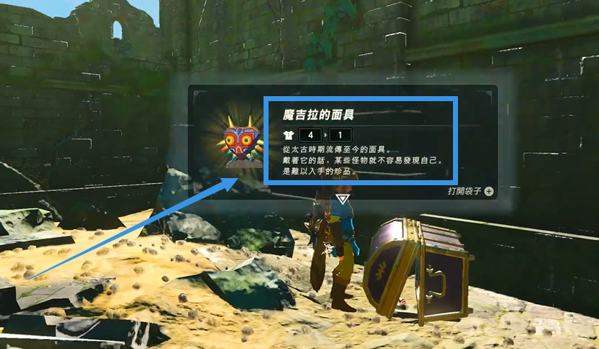 首頁 塞爾達傳說:荒野之息 問答 塞爾達太古面具在哪? 2022-09-21 1、首先打開地圖傳送到初始之塔。2、到達位置後,往向右下方降落。3、去往前面的遺跡。4、來到葛摩駐軍地遺跡的牆角位置,使用磁力抓取器抓取寶箱。5、最後打開寶箱就可以獲取太古面具。