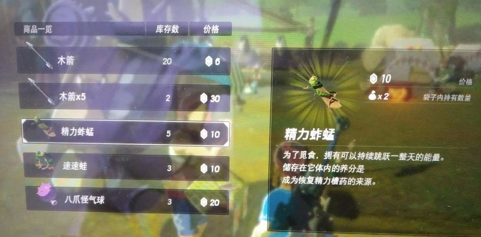 精力蚱蜢的食譜是1隻螞蚱 3條精力鱸魚 1個怪物素材,出來一瓶三圈精力葯。