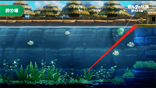對准想釣的魚按B鍵揮桿,也可按L鍵瞄準再揮,按B鍵拉餌,吸引魚的注意,魚上鉤後,同時按住方向鍵的↓和A鍵拉桿,繼續按住A鍵收線,持續往一個方向拉桿很容易讓魚跑掉,可以選擇不停地擊打方向鍵的↓,當魚靠岸時會激烈掙扎,這時放慢擊打的頻率,這樣魚上鉤了。