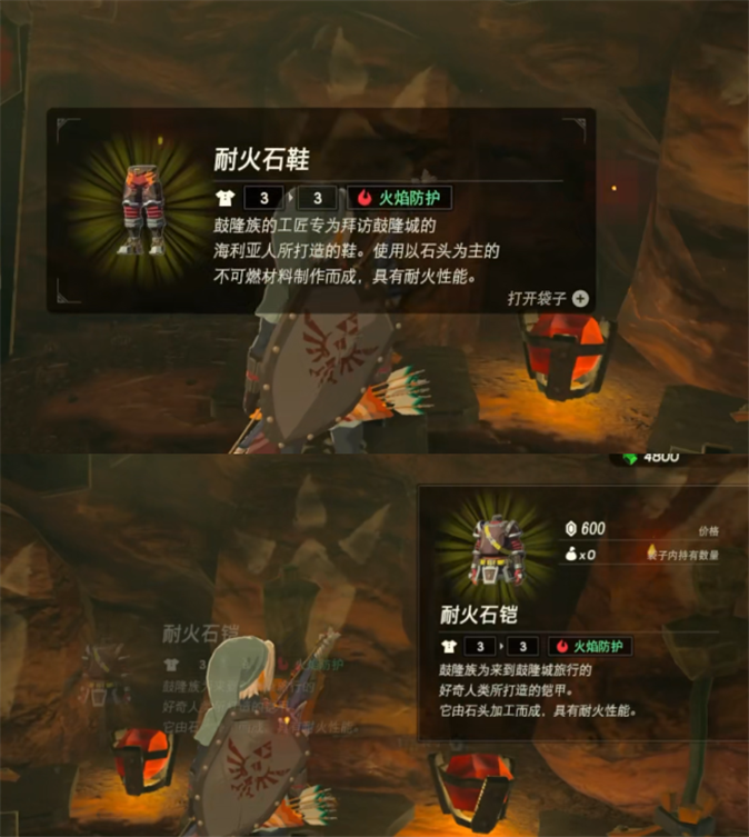 去火山要穿抗火裝,抗火裝要在火城裡才有賣,所以之前先到火山區域下方的一個湖邊的馬房,那裡有個掃地的NPC,在她那可以賣抗火藥,160塊3瓶,一般直衝的話一瓶也夠了,但保險起見還是買3瓶吧。到了火城立刻買防火裝,好像是600一件,頭最貴2000。