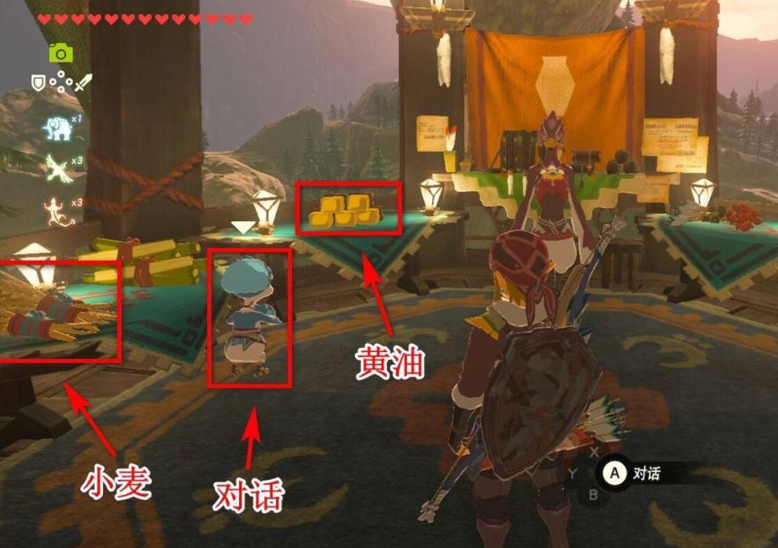 1、打開遊戲我們需要先去兄弟岩接取神廟任務,然後回到利特村雜貨店,去找藍色的鳥購買黃油和小麥。