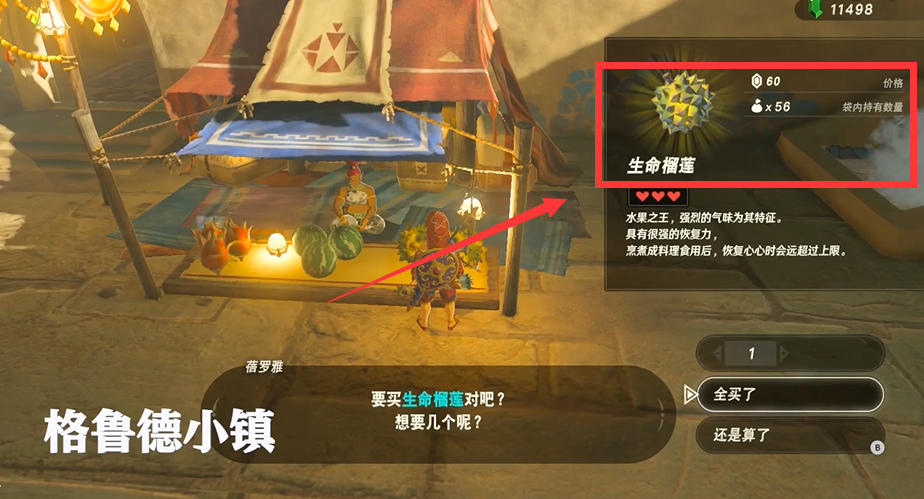 首頁 塞爾達傳說:荒野之息 問答 塞爾達傳說生命榴槤在哪裡買? 2022-09-26 首先來到格魯德小鎮找到蓓羅雅的售賣攤位,與蓓羅雅進行交談之後進行購買就能夠買到生命榴槤,在格魯德小鎮能夠買到3個生命榴槤,且只有蓓羅雅的攤位才有生命榴槤。
