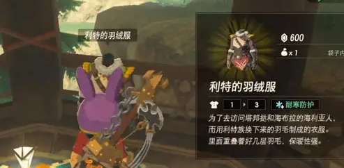 首頁 塞爾達傳說:荒野之息 問答 塞爾達鳥人村防寒服要買一套嗎? 2022-09-26 防寒服建議買一套,玩家前期在NPC老頭處獲得的防寒服只是1級防寒服,而在鳥人村購買的防寒服套裝屬性是3級防寒,穿整套的話禦寒的級別更高,升級後的整套還能防止被凍住。