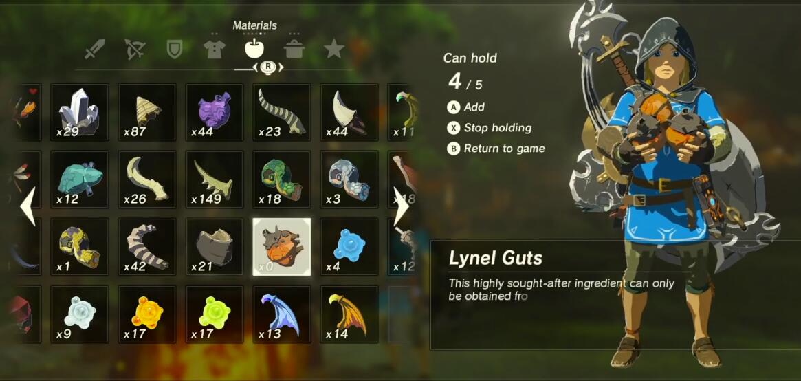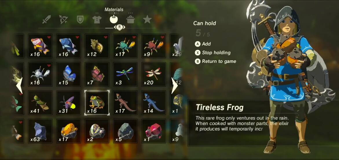 首頁 塞爾達傳說:荒野之息 問答 塞爾達傳說人馬肝臟怎麼配葯劑最值錢? 2022-09-27 在【塞爾達傳說:荒野之息】中,可以用四個人馬肝臟加青蛙製作出2300的藥水,是賣出價相對較高的藥劑了。1、選擇4個人馬肝臟;2、選擇一個青蛙;3、放入鍋中;4、合成藥水;5、合成藥水去賣錢。