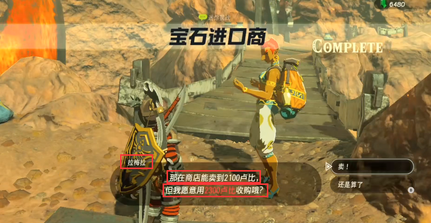 1.塞爾達賣寶石在鼓隆城的寶石進口商那裡最貴,如圖到達鼓隆城