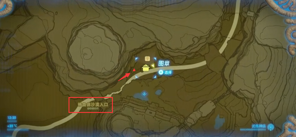 1.塞爾達刷速速菇的地方再格魯德沙漠入口的驛站那裡,地圖上的位置如圖所示