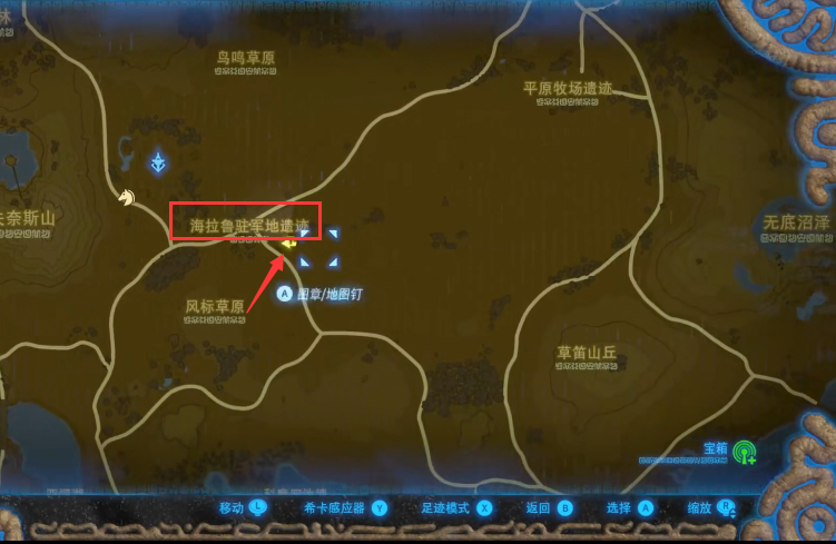 1.塞爾達傳說海拉魯屯兵遺跡又翻譯成海拉魯駐軍地遺跡,地圖上的位置如圖所示