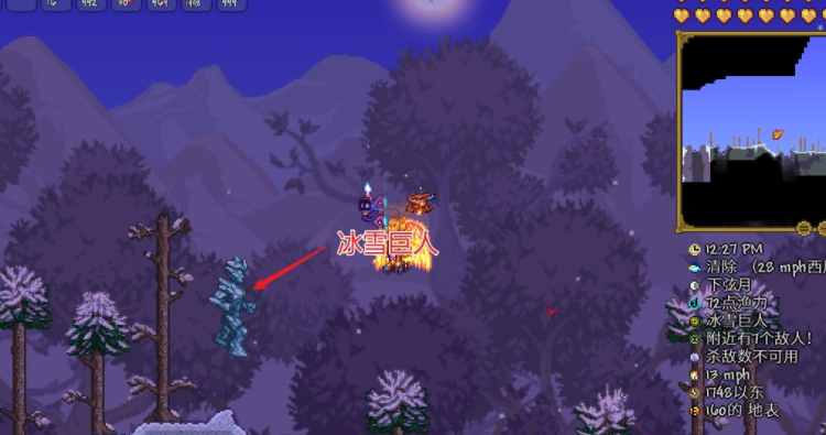 3、困難模式下,如果雪原刮暴風雪就有概率生成冰雪巨人。