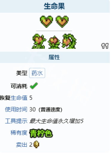 首頁 泰拉瑞亞 問答 泰拉瑞亞生命果怎麼找? 2022-09-29 1.泰拉瑞亞生命果的出現條件是必須要打敗至少一個機械 Boss,它才會開始生長2.生命果可以用任何武器或工具來採集,不是必須得用鎬才能採集,任何種類的攻擊都可以採集它們