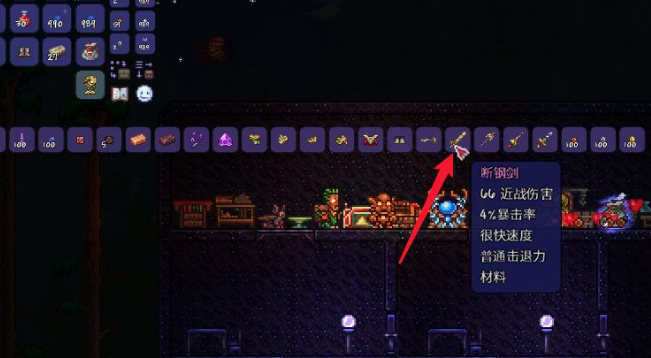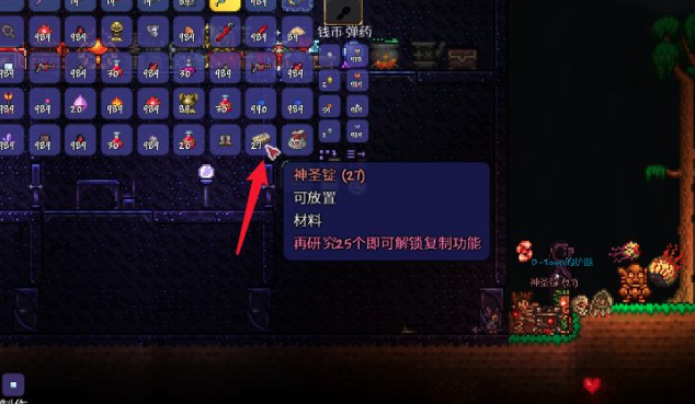 首頁 泰拉瑞亞 問答 泰拉瑞亞原版斷鋼劍怎麼獲得? 2022-09-30 1、夜間召喚並擊殺雙子魔眼、機械骷髏王和毀滅者(新三王)。如下圖所示:2、撿起新三王死亡掉落的神聖錠。如下圖所示:3、放置困難模式下的砧,秘銀砧或山銅砧都可以。如下圖所示:4、將12個神聖錠製作成斷鋼劍。如下圖所示: