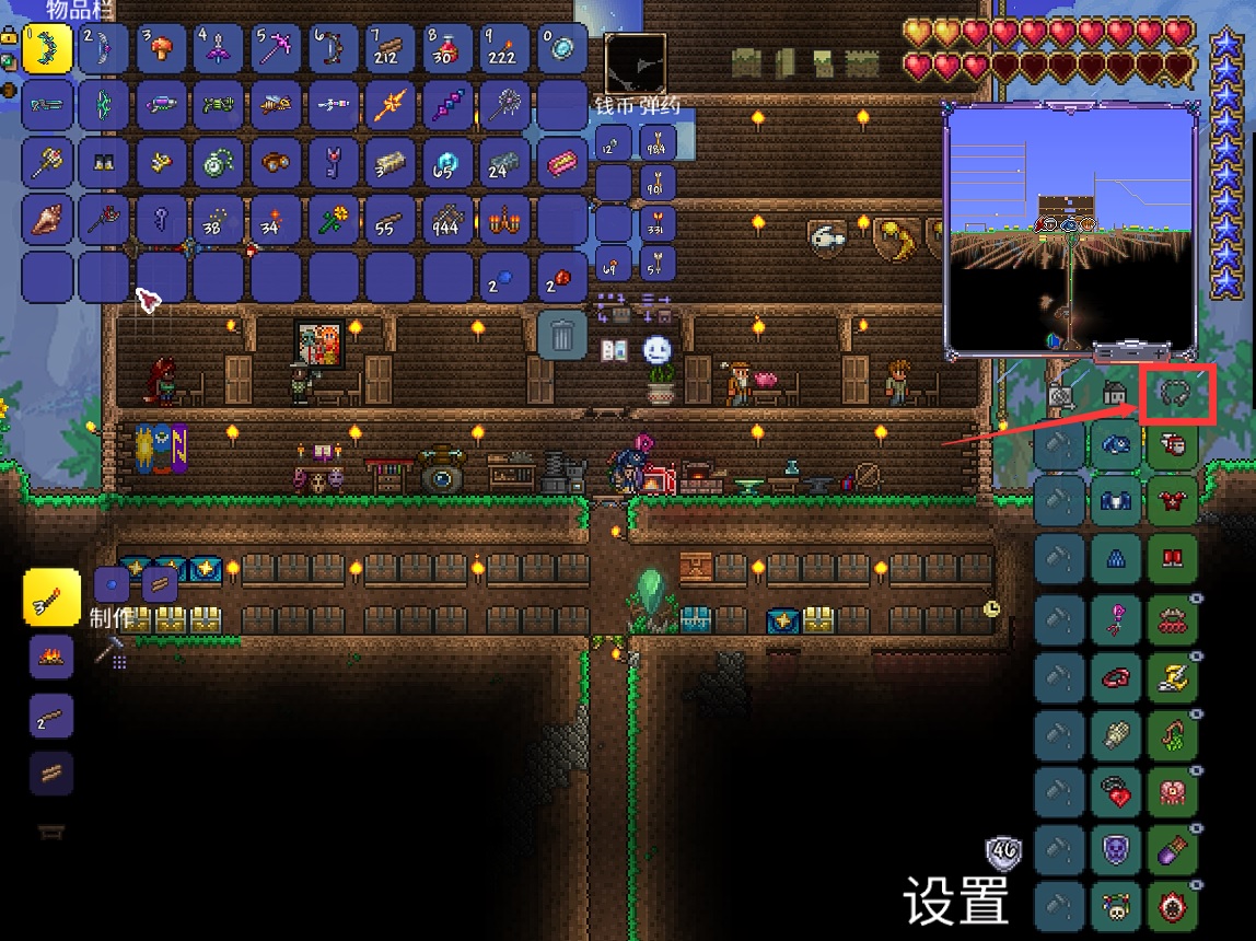 首頁 泰拉瑞亞 問答 泰拉瑞亞寵物取消了怎麼召喚? 2022-10-01 1.按下ESC,打開物品欄,然後點擊最右側的裝備按鈕,如下圖;2.然後點擊寵物右上角的可見選項;3.這樣就能重新把寵物召喚出來了。