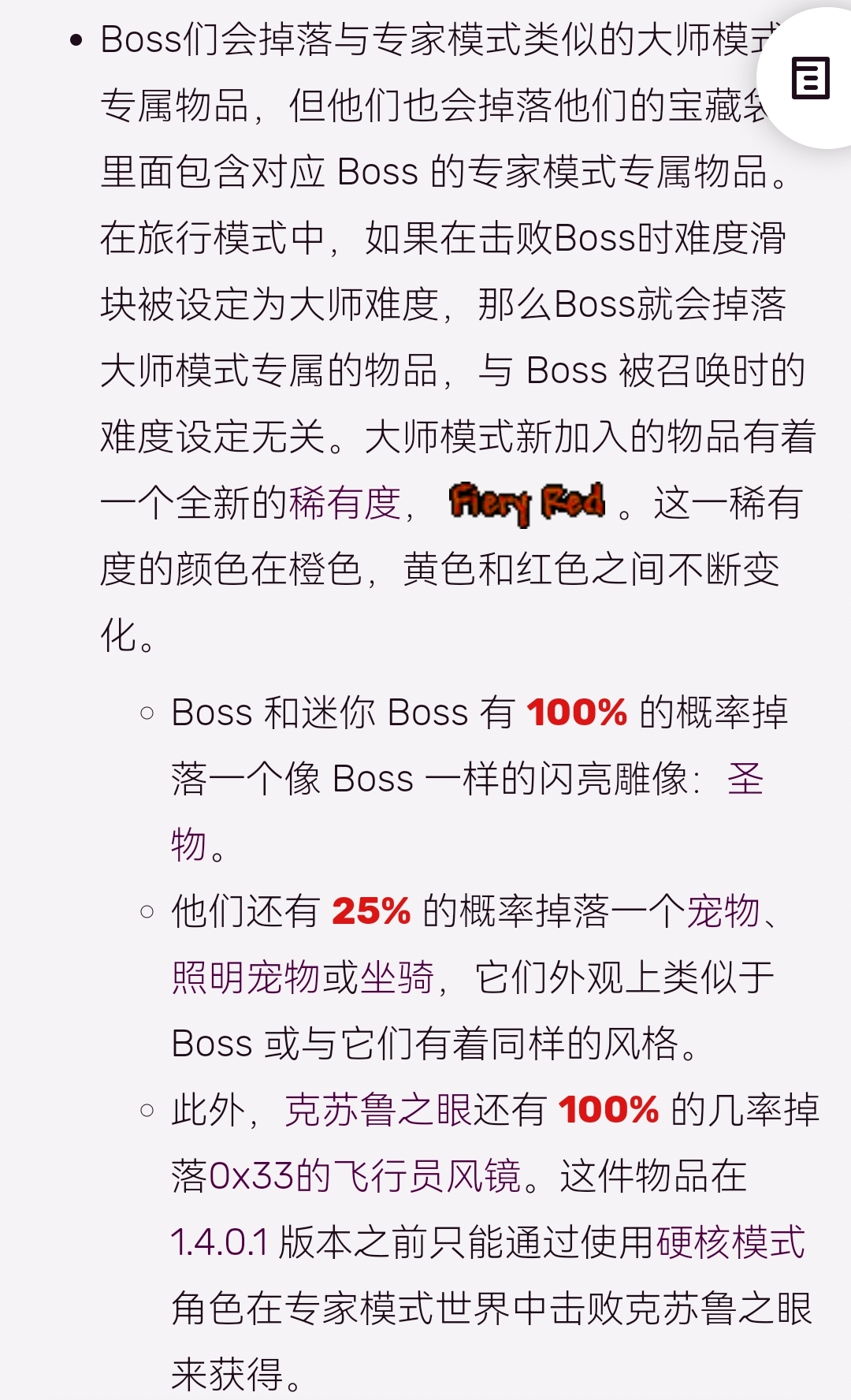 首頁 泰拉瑞亞 問答 泰拉瑞亞專家和大師掉落物的道具有什麼區別? 2022-10-01 專家模式和大師模式掉落的物品沒有什麼區別,專家模式能夠掉落的大師模式也能夠掉落,並且大師模式掉落的概率可能比專家模式掉落的概率還要高。大師模式還會掉落一些大師模式專有的物品,一些大師模式特有的寵物坐騎,還有雕像。