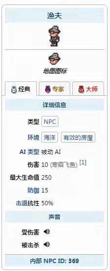 首頁 泰拉瑞亞 問答 泰拉瑞亞漁夫任務在哪? 2022-10-02 漁夫任務位置介紹:在遊戲《泰拉瑞亞》中,玩家會在海洋生物群落的沙灘或水面上隨機遇到正在睡覺的漁夫,需要與其互動過並已將其叫醒後,並在城鎮中留出一間空房屋時就能讓漁夫NPC住進城鎮內,然後就可以找漁夫領取釣魚任務。