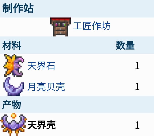 在泰拉瑞亞這款遊戲中,天界殼是一種困難模式,石巨人後可用的配飾,玩家可以使用天界石和月亮貝殼在工匠作坊處合成。
