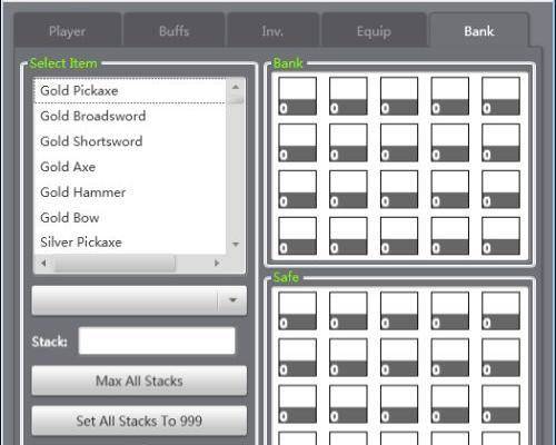 8.最後一個bank就是儲存室,和Inv修改類似,只不過一個是箱子一個是帶在身上的背包。可以進行修改。