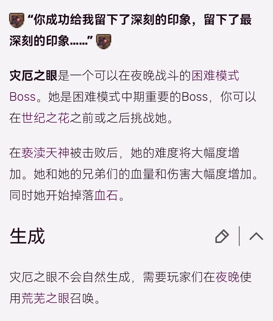 首頁 泰拉瑞亞 問答 泰拉瑞亞至尊災厄眼怎麼召喚? 2022-10-07 災厄之眼需要你在夜晚的時候用荒蕪之眼進行召喚,它不像克蘇魯之眼可以在夜晚自動生成,它是在困難模式中比較重要的一個boss,你可以在擊敗世紀之花之後再選擇去挑戰它,因為此時你有合適的裝備去攻擊它。