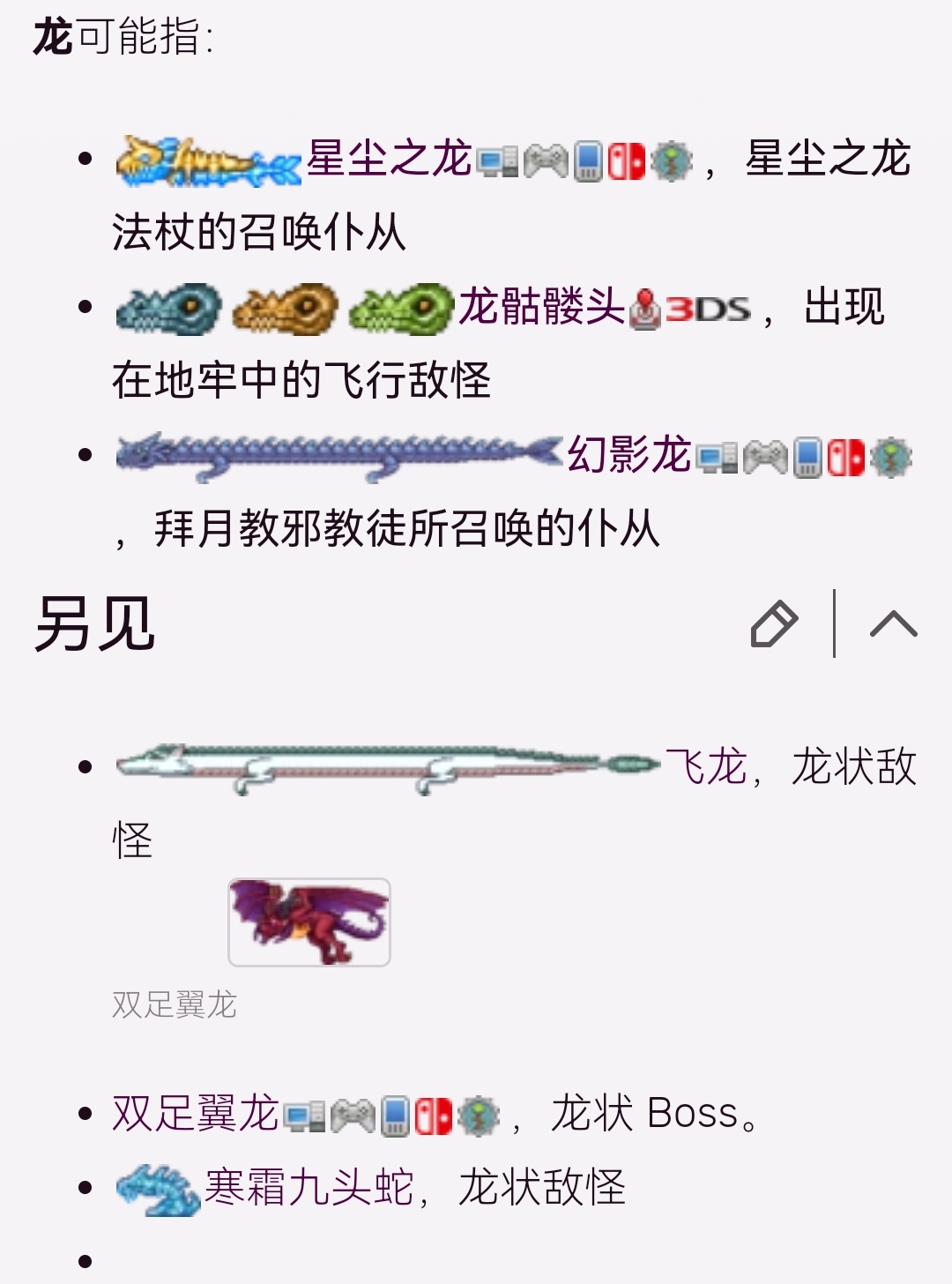 首頁 泰拉瑞亞 問答 泰拉瑞亞有幾種龍? 2022-10-08 龍一共有6種,分別是召喚出來的星辰龍,拜月教邪惡教徒召喚出來的幻影龍,生成的飛龍,boss雙足翼龍,3D版的龍骷髏頭,召喚出來的龍形補從寒霜九頭蛇。